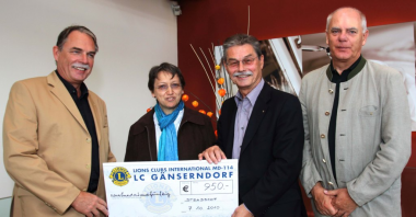 das ist einer der Leitsätze des Lionsclubs Gänserndorf. So konnte Präsident TR DI Dr. Johann Kaltenbrunner mit seinen Vorstandsmitgliedern MR Dr. Helmut Legat und Rudolf Achter in diesen Tagen einen Scheck im Wert von € 950.- an die Direktorin der Volksschule Strasshof, Frau Elisabeth Sensenbrenner, übergeben.