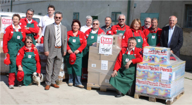 LF Heinz Kamensky ist es gelungen (nach privatem Kontakt mit dem Geschäftsführer von HENKEL Kroatien), über die Österreichische Geschäftsleitung 1.200 kg Waschpulver zu organisieren und mit dem LKW der Fa. Kamensky an die „Team Tafel Österreich“ zu liefern.